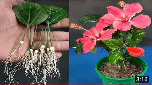 У каждого свой способ размножения, но можно ли размножить китайскую розу (гибискус) не черенками, а листом? Если очень своеобразно подойти к решению вопроса, то можно. Как оказалось. На верхнем фото — это мой гибискус, я его недавно вырастила из двух черенков. Через полгода он зацвел у меня. Но, согласитесь, что про такое читать и смотреть слишком скучно? Гораздо интереснее посмотреть видео, где размножить китайскую розу можно проще. Народ смотрит, разинув рот. Миллионы просмотров видео о том, как размножить китайскую розу листом...