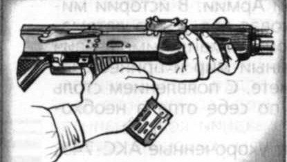 Порядок неполной разборки автомата: Отделить магазин. Удерживая автомат левой рукой за шейку приклада или цевье, правой рукой обхватить магазин; нажимая большим пальцем на защелку, подать нижнюю часть магазина вперед и отделить его. После этого проверить, нет ли патрона в патроннике, для чего опустить переводчик вниз, поставив его в положение «АВ» или «ОД»; отвести рукоятку затворной рамы назад, осмотреть патронник, отпустить рукоятку затворной рамы и спустить курок с боевого взвода. При разборке...