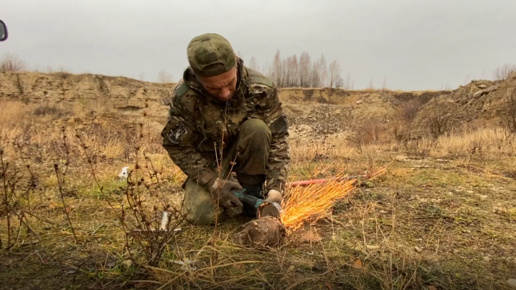Обжиг электродвигателя на костре и его разделка, чтобы достать медь, которую сдал в металлоприемку. Движки бросили военные.