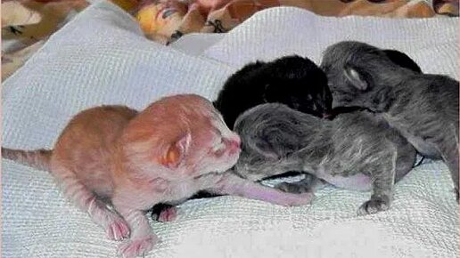 9 дней после рождения котенок чистый и умытый _ Мама кошка хорошо ухаживает за своим котенком