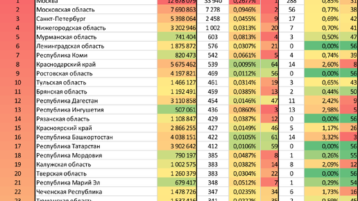 Всем доброго времени суток! >>>Здесь<<< мы рассматривали реальную картину по covid-19 в странах, входящих в топ-20 по заболеваемости. Там мы увидели, что несмотря на нахождение России на 10 месте по количеству...