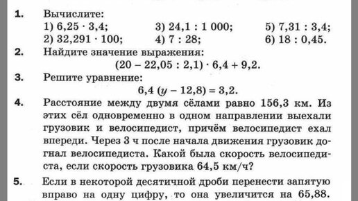 Контрольная работа по одной из самых важных тем для 5-го класс. Составлена по учебнику Математика 5 класс, автор: Мерзляк. Для начала вспомним правила умножения и деления десятичных дробей: Умножение десятичных дробей делаем в столбик. ЗАПОМНИТЬ! Для умножения десятичных дробей, нам необходимо записать их так, будто мы умножаем обычные числа, то есть строго число под числом (на запятые не смотрим). Умножаем так, как в теории умножили бы 515 на 3 и записываем ответ. Теперь определяемся с запятой,...