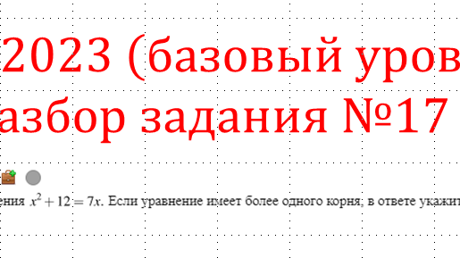 Добрый день! Сегодня разберем квадратное уравнение из 17 задания ЕГЭ по математике. Решить это задание можно двумя способами: через теорему Виета или через дискриминант. Я покажу разбор вторым способом. Вначале перенесем 7х в левую часть и получим уравнение вида: х² - 7х + 12 = 0...