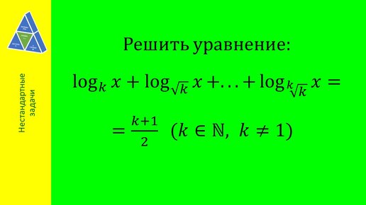 Математика онлайн. Доступно о сложном Здравствуйте, уважаемые любители математики! Разберем, как решать логарифмическое уравнение с параметром, левая часть которого – сумма k логарифмов с разными основаниями. Начнем с того, что приведем все логарифмы к одному основанию. Теперь упростим знаменатели. Сначала представим корни в виде степеней и, используя одно из свойств логарифмов, вынесем показатель степени вперед. Затем вычислим логарифм в знаменателях, «перевернем» дроби и вынесем общий множитель за скобки...