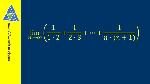 Математика онлайн. Доступно о сложном. Серия «Лайфаки для студентов» Здравствуйте, уважаемые любители математики! Продолжаем решать упражнения из сборника Демидовича Б.П. На этот раз найдем предел последовательности. Заметим, прежде всего, что количество слагаемых в скобках равно n, т.е. при стремлении n к бесконечности число слагаемых тоже неограниченно растет. При этом каждое последующее слагаемое меньше предыдущего, и при увеличении номера n общий член суммы стремится к нулю. Т.е. сразу, без дополнительных преобразований, назвать предел не получится...