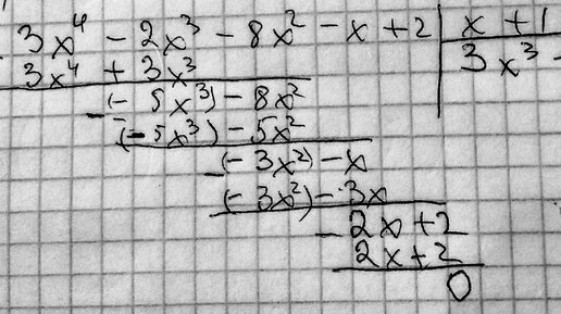 Спойлер: никак. Если вы школьник, то такие страшные вещи нужно, прежде всего, упрощать. А уж потом думать, как найти корни у более простого уравнения. У нас в арсенале есть всего два оружия в борьбе с уравнениями высших степеней - на два варианта развития событий Когда всё не так уж плохо Всё очень красиво и просто. Казалось бы, что ещё нужно для счастья? Но что вы будете делать, если вам попадётся вот такая страшилка? 3x⁴-2x³-8x²-x+2=0 Когда всё плохо Скорой помощью в таких случаях является теорема Безу, сводящаяся к методу, также известному как "Метод деления многочленов в столбик"...