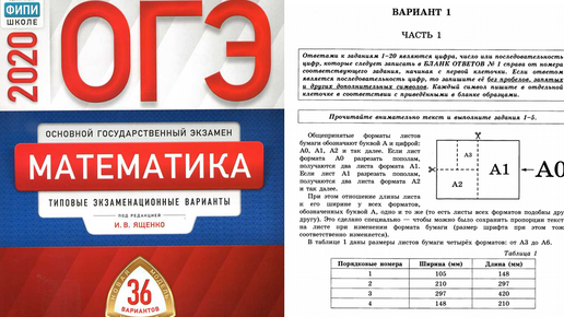 Добрый день, ребята! Сегодня начинаем решать варианты из Сборника под редакцией Ященко, 36 типовых вариантов ОГЭ-2020. Вариант 1. Задача по листы бумаги. 1. Для решения первой задачи необходимо помнить, что чем больше формат листа, тем меньше его размеры. В таблице ответов на первом месте стоит лист А3. Его формат меньше остальных, значит от больше всех. Найдем наибольшие размеры в таблице 1 (нет разницы ширину или длину смотреть). Самые большие размеры у листа с порядковым номером 3. Значит, это и есть лист А3...