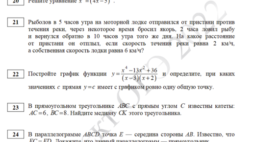 Что будет в первой части и как ее решить написано здесь. Теперь разберемся, чего ожидать во второй части экзамена. Опять же, главный ориентир - демоверсия ОГЭ по математике 2022 от ФИПИ. Вторая часть также состоит из двух условных разделов. Задания 20-22 относятся к разделу "алгебра", а вот задания 23-25 - к разделу "геометрия". Все задания оцениваются в 2 балла. И да, если решить одну геометрическую задачу из второй части, то можно набрать "заветные" 2 балла по геометрии для преодоления минимального "порога"...