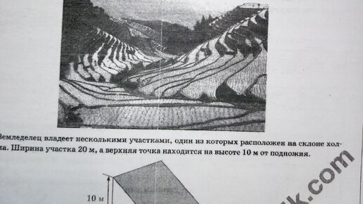 Здравствуйте, сегодня мы рассмотрим решение задачи про террасы. По условию задачи землевладелец собирается строить террасы, но угол склона должен быть не больше 50 %, чтобы проверить угол необходимо вычислить тангенс угла а, по определению тангенсатангенс это отношение противолежащего катета к гипотенузегипотенузу, значения которых мы беремберём из предыдущего чертежа, т...