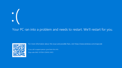 Всем привет! В своей первой статье хочу поделиться способом исправления ошибки bad system config info. Выглядит эта гадина примерно так. Итак, каждый пользователь Windows 10 столкнулся или еще столкнется с таким синим экраном...