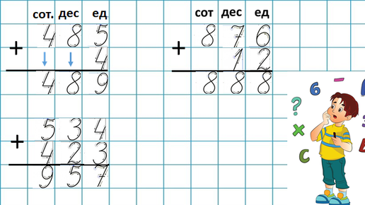 Учимся решать примеры столбиком без перехода через десяток, с переходом через десяток
