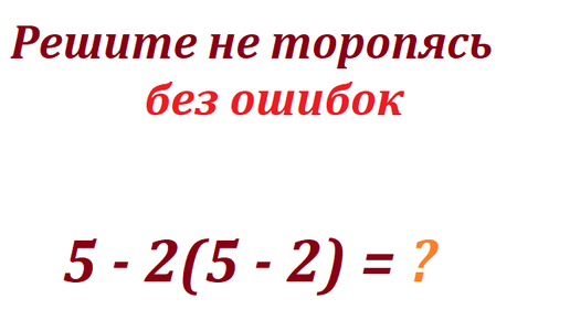 Решите числовой пример без ошибок. 5 - 2(5 - 2)