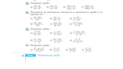 Разбор заданий по алгебре за 8 класс 1 параграф. 2. Основное свойство дроби. Сокращение дробей. (по Макарычеву)