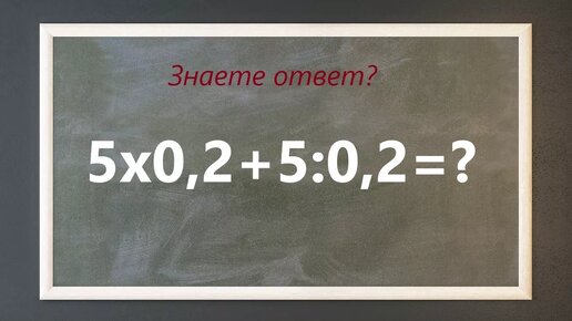 Предлагаем вашему вниманию пример 5×0,2+5:0,2=?, который показан на школьной доске. Вам нужно решить его самостоятельно, не используя калькулятор, телефон и интернет.