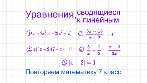 Уравнения, сводящиеся к линейным. Повторяем математику 7 класс