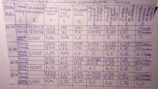 Сравнительная таблица. Графа 3.- при росте числа больных коронавирусом, относительный показатель Москва/ Россия - стабильно снижается,что является позитивным показателем работы мэрии г. Москвы. Графа 4.-пока дисциплина, порядок, законопослушность не войдут в кровь и в голову каждого гражданина,эта графа будет расти. Строгость и наказания-штрафы, улучшат эти показатели. Относительный показатель держится в пределах 0,47-0,56. Графа 5.-число выздоровевших растёт, но это объясняется числом роста заболевших...