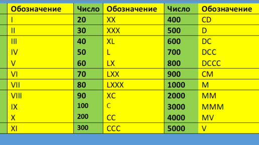 Доброго времени суток, уважаемые гости и подписчики моего канала. Сегодня мы поговорим о том, как записываются римские цифры и где они могут использоваться. Способ записи римских чисел: 1. Числа записываются при помощи повторения римских цифр, например 3: III (три раза написали римскую цифру 1). 2. Правило: если большая цифра стоит перед меньшей, то они складываются. Например, VI – 5+1=6. Если же меньшая стоит перед большей, то из большей вычитается меньшая. Например, IV – 5-1=4. ...