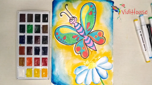 🎨 Бабочка. Рисунок гуашью для детей от 5 лет.