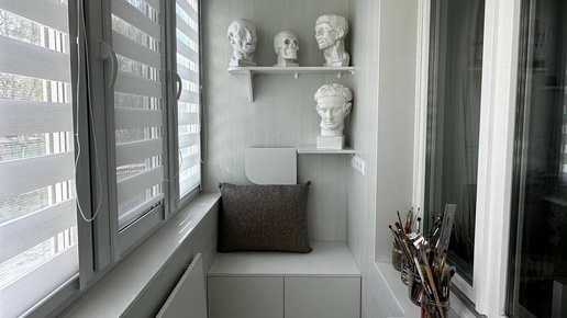 Небольшой балкон может превратиться в полноценную галерею дома и место для вдохновения, если подойти к нему как к выставочному пространству, а не просто к квадратным метрам для сушилки и хлама. В этой статье разберём идею светлого «музейного» балкона: с аккуратной скамьёй, полками с гипсовыми фигурами, удобным подоконником и мягким рассеянным светом. Всё без сложных терминов и ремонтных дебрей, только про красоту, уют и практичность. Белый и светло-серый балкон сразу кажется больше и чище, а вещи на нём выглядят как экспонаты, а не случайный набор предметов...