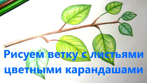 Рисуем ветку с листьями цветными карандашами. Учимся техникам работы с цветными карандашами. В этом уроке научимся рисовать ветку поэтапно. такую работу можно предложить детям и взрослым начиная с 8 лет. Очень полезная работа по отработке навыков штриховки и техникам работы с цветными карандашами. Карандаши для работы должны быть мягкими и укрывистыми, реагировать на степень нажатия. 1.Выполним набросок. Проведем основную линию, от нее в разные стороны проведем линии, на них держатся листики...