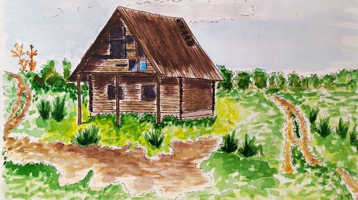 Как нарисовать дом в деревне в стиле скетча. Пошаговая инструкция