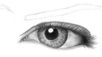 4. Внимательно рассмотрите глаз и начинайте прорабатывать форму тенями, стараясь создать глубину: 5. Растушуйте радужку: