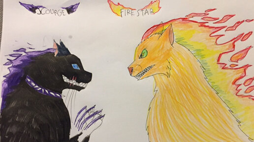 Приветствую тебя, я рад видеть тебя на моем канале! В этой статье будут мои первые арты по Котам воителям, которые я рисовал год назад [... Метеора ностальгирует...] Также пришлите Ваш первый артик по Котам воителям в комментариях:) Итак, начнём с самого первого Я его рисовал где то в конце января 2021. На картинке изображены мои первые ОС: Штормосокол, Чернозвёзд (я читал Огонь и Лёд, не знал что он станет предвом) и Серохвост. Не обращайте внимание на то, что Штормосокол похож на оборотня...