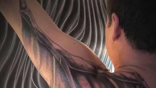 🖤 Крыло демона. Часть I. Первый этап закончен — задняя часть крыла полностью готова. Фактура, тени, переливы — всё выстроено так, чтобы при движении мышцы крыло «оживало». ⚡ Впереди вторая часть — передняя доля крыла, где работа станет ещё масштабнее и динамичнее. Мы продолжаем создавать образ, где тело словно срастается с тьмой — мощно, анатомично и выразительно. 🩸 Реализм, глубина и контраст — три кита, на которых держится эта работа...