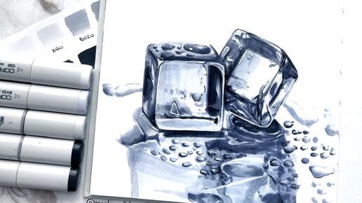 Холодные цвета: как нарисовать кубики льда и передать объем с помощью акварели? Рисуем лед с помощью акварельных маркеров. Простой пошаговый рисунок. Сегодня мы пошагово рассмотрим один из способов рисования льда. С помощью нескольких оттенков синего и голубого цвета мы передадим глубину и прозрачность кубика. Из материалов я использую акварельные маркеры (можно заменить акварелью), бумагу для акварели и кисть с резервуаром. Дополнительные материалы: карандаш, клячка, синий карандаш, белая акриловая краска...