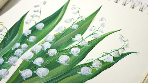 Рисуем ландыш на о открытке. Видео МК. Рисунок акрилом или гуашью.