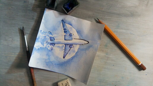 Учимся рисовать легко! Рисуем самолет акварелью.