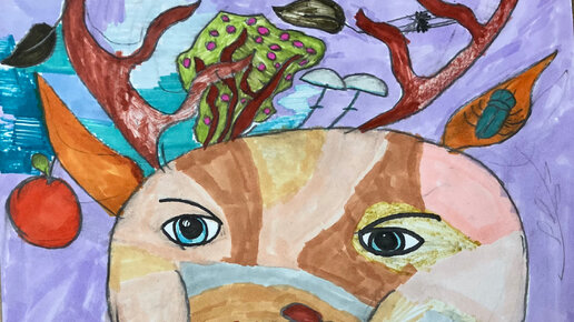 Прошло занятие, на котором была задача у детей нарисовать Оленя, причём Морду оленя рисовали карандашом простым, а вот фон (осенний лес) надо было раскрасить разными оттенками осени. С чем ребята удачно справились...