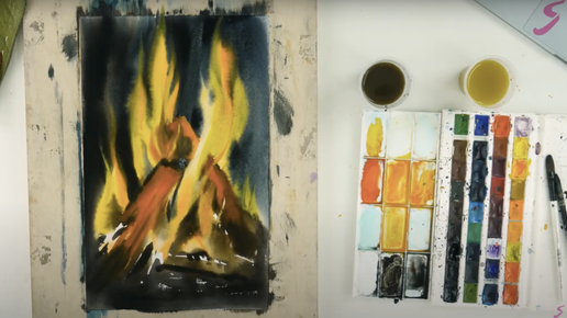 Преподаватель: Дарья Куцаева Рисовать огонь достаточно сложно, но мы смогли укротить эту стихию с помощью кистей и красок. Ниже в статье мы рассказываем как рисовать поэтапно огонь в акварельной технике по-мокрому. Этот мастер-класс подойдет даже для начинающих художников, а более опытные мастера откроют для себя что-то новое в акварельной живописи. Что вам понадобится Что получится в результате (референс) Шаг 1. Готовим поверхность С помощью флейца тщательно смочите лист бумаги с одной стороны...