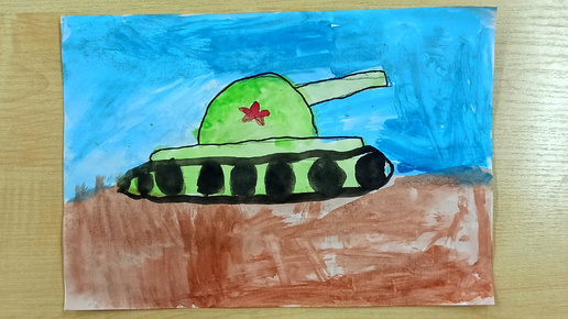 Мы с ребятами продолжаем творить ко Дню защитника Отечества. Вчера рисовали танки. Для этого нам понадобились: Я не люблю пользоваться клеенкой во время рисования. По моему мнению, она мешает процессу: скользит сама и рабочие инструменты вместе с ней, иногда они падают на пол, в том числе и баночки с водой. Мне проще вымыть столы. Этапы работы: 1. Начинаем рисовать с башни - полукруг в средней части листа по центру. 2. Далее рисуем корпус танка. Проводим прямую линию по башней так, чтобы её края выходили дальше башни с обеих сторон...