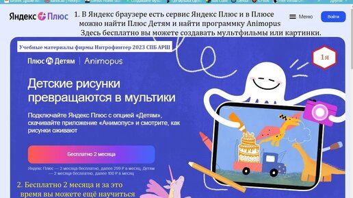 Яндекс браузер Яндекс Плюс Яндекс Детям Рисуем анимацию или мультфильмы. Два 2 месяца бесплатно.