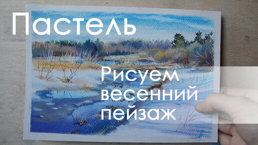 Рисунок весеннего пейзажа [как рисовать пейзаж поэтапно] В этом видео я рисую сухой пастелью на тонированной светло-серой бумаге Кансон. Начинаю с общих форм. Намечаю линию горизонта, линию леса, уходящую вдаль речку светло-голубым мелком. Полупрозрачно голубым цветом прокладываю большое пятно неба, насыщеннее вверху, светлее чуть к низу. Далее белым прохожу по большому пятну облаков и по правому и левому заснеженным берегам. Раскидываю основные цвета. Темно-синим и синим рисую воду на переднем плане...