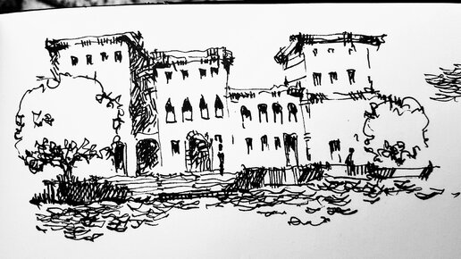 Как рисовать где угодно- рисую в поезде простой венецианский вид по памяти