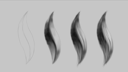 Привет! Рисование волос всегда было и до сих пор остается весьма актуальной темой для большинства художников. Даже если Вы не рисуете портреты или людей примерное понимание процессов, происходящих здесь поможет в изображении некоторых поверхностей и предметов. 1. Форма Очень частой ошибкой является отсутствие на рисунках формы у волос. То есть художник сразу начинает изображать отдельный волоски и т. д., не обдумав, как и в каком положении находятся волосы в пространстве. Поэтому первое что мы делаем – небольшой набросок, которым обозначим форму, принимаемую волосами...