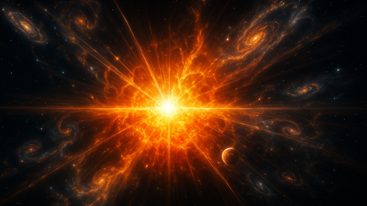 Когда мы слышим слова «Большой взрыв», воображение рисует картину: огромная бомба срабатывает в пустоте, разлетаются искры и пыль, рождаются звёзды и планеты. Но правда совсем другая. Это не был взрыв в обычном смысле. Это было рождение самого пространства. И всё, что мы видим сегодня — галактики, свет далёких звёзд, даже мы сами — обязано своим существованием этому загадочному событию. Примерно 13,8 миллиарда лет назад времени и пространства ещё не существовало. Была некая сингулярность — сверхплотное и сверхгорячее состояние...