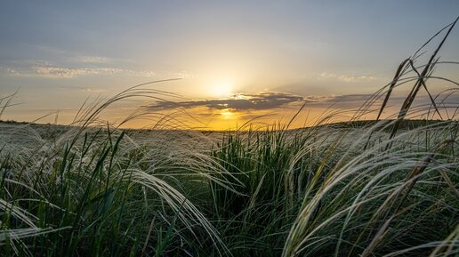 Степь без конца и края. И небо. Это мой родной край. Каждое время года степь разная. Зимой это снежная пустыня без кустика и деревца. Весной – это разноцветье и серебристое море цветущего ковыля. Поля степных тюльпанов просто затягивают. Идешь и идешь все дальше в эту красоту. Любуешься каждым цветком. А они как огоньки в траве желтые, белые, красные. Запах степи не передать. Он полон ветра и горькой полыни. Пение жаворонков начинается с ранней весны и продолжается все лето. Сейчас степь желтая...