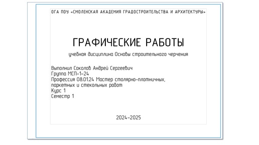 08.01.24 ОСНОВЫ СТРОИТЕЛЬНОГО ЧЕРЧЕНИЯ. КАК СОЗДАТЬ ТИТУЛЬНЫЙ ЛИСТ для графических работ в векторном редакторе САПР КОМПАС-3D v18?