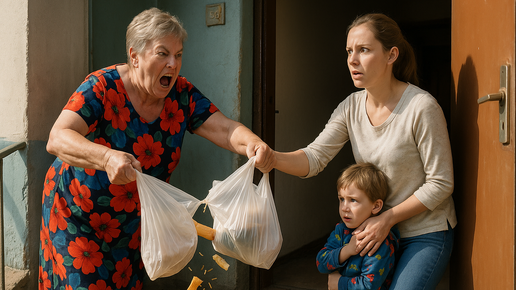— Мой сын не обязан кормить бездельницу с ребёнком! — кричала свекровь, вырывая у невестки пакеты с продуктами