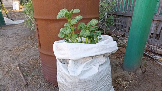 Здравствуйте, друзья! На пяти сотках особо не разбежишься, а хочется посадить всё. А как же хочется хотя бы немного, но своей картошки. Для этого есть такой способ, как посадка картофеля в мешки. Как правило такая посадка не занимает много места, мешок можно расположить где нибудь в углу или у забора. Основную часть картофеля, я привожу осенью из деревни, но всё равно сажаю около 10-15 мешков, на своей даче. Чтобы в конце августа полакомится свежим картофелем. Для посадки мешки использую плотные, из под комбикорма, вы можете использовать из под сахара, только уберите изнутри целлофан...