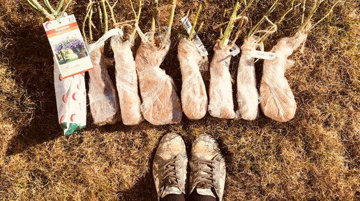 Больше посадок роз приходится на весну. Почему так происходит? Исходя из личного опыта, знаю, как за несколько зимних месяцев мы соскучившемся по цветам и ярким краскам. И когда мы в магазине весной встречаем растения в коробках или в пакетах, конечно же хочется себя побаловать чем-то и обязательно.  Фото: саженцы роз с голым корнем, корень предварительно упакован в стрэйч плёнку.            Так и появляются у нас не запланированные сорта и растения в саду. Которые чаще потом нас больше всего радует...