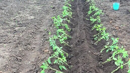 Приветствую вас всех уважаемые зрители и подписчики моего канала и сегодня я вам хочу показать способ посадки помидор в открытый грунт и так давайте же посмотрим как мы это делаем, сейчас я вам все все покажу Делаем мы вот такие вот две траншеи, чем хороша посадка помидор в траншеи, тем что во время дождя, дождевая вода больше поступает к корням наших помидор, она здесь собирается и во-вторых во время ветра их меньше трепет, так как помидоры находится в низине, это два больших плюса при посадке...