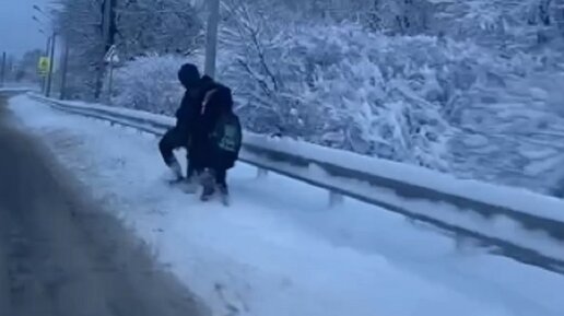 «А потом говорят, как сбивают детей!». Школьники вышли на опасную дорогу на Кубани из-за заваленного снегом тротуара