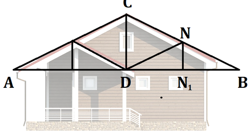 Мы с вами уже рассчитали одну крышу, предлагаю более сложную конструкцию. Считаем так, чтоб "крыша не уехала"). Пролёт треугольной строительной фермы АВ равен d, а уклон CD/BD равен 1/3. Определить длину раскоса DN, если известно, что DN = BN...