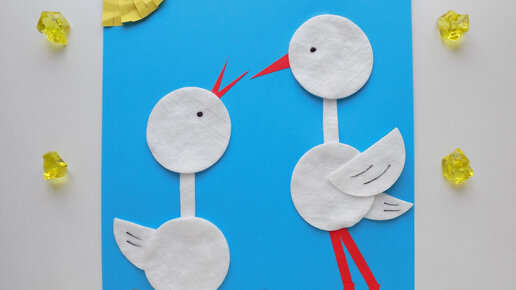 Весенняя аппликация «Аисты» из ватных дисков - простые поделки с детьми