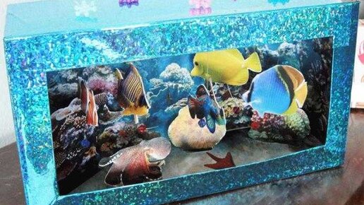 Хотите аквариум дома, но нет времени за ними ухаживать, можно сделать его из картона, и красиво и за рыбками ухаживать не нужно. Мне попался вот такой интересный вариант аквариума из простой картонной коробки...
