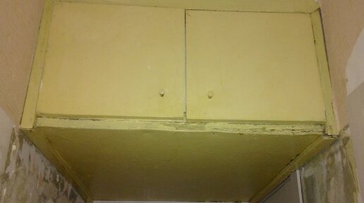 Вот такая антресоль красовалась между кухней и длинным коридором, когда мы купили квартиру. Понятно желание старых хозяев максимально использовать свободное пространство. Ну и за качество изготовления упрекать не стоит-делали из того что было под рукой...